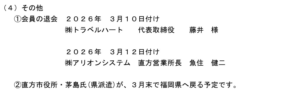 1月役員会の概要 開催日:2026年 1月 8日(木) 15:00~16:10