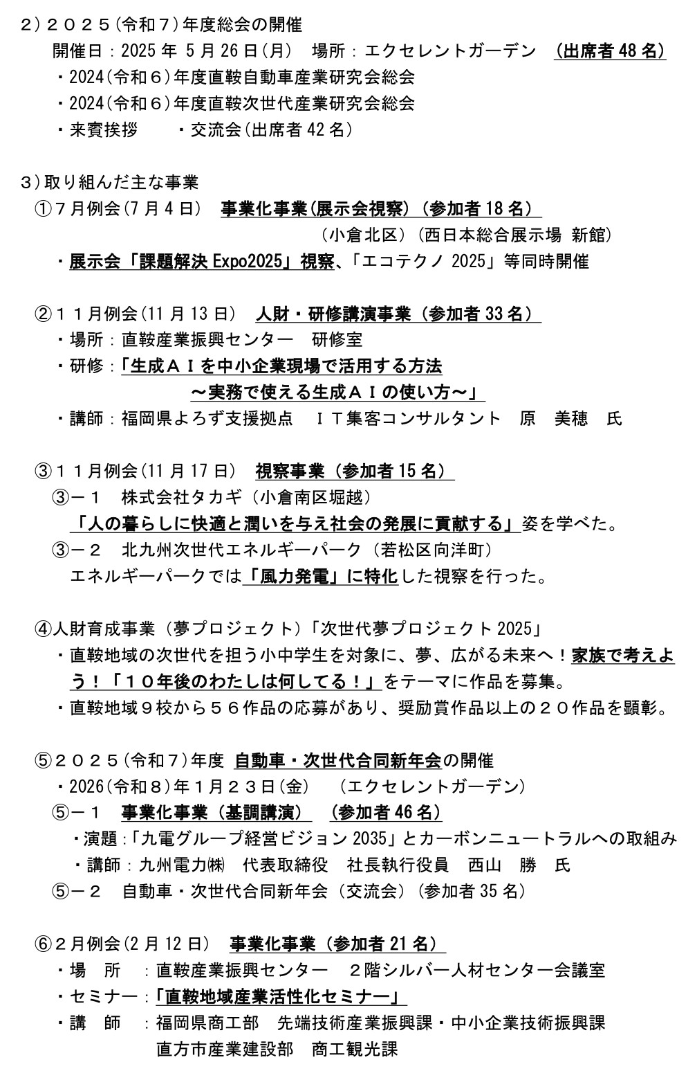 ・2025(令和7)年度 直鞍次世代産業研究会 事業実績及び計画(案)