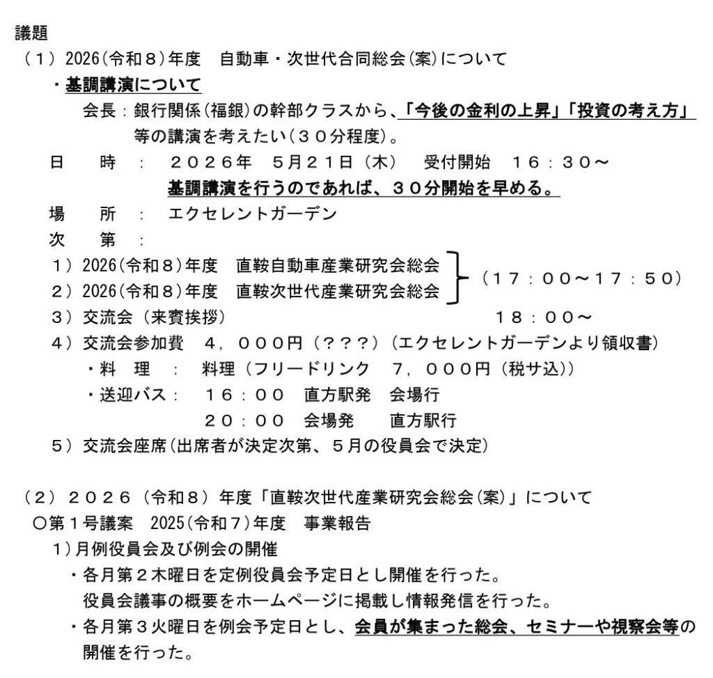 (1)令和8(2026)年 次世代・自動車合同新年会開催について(報告)
